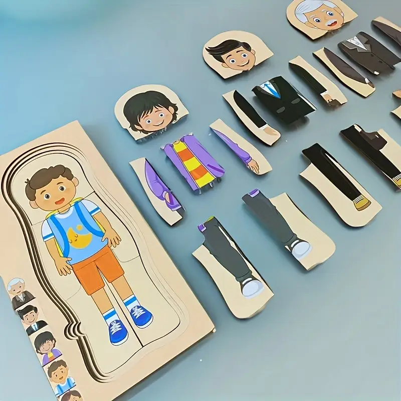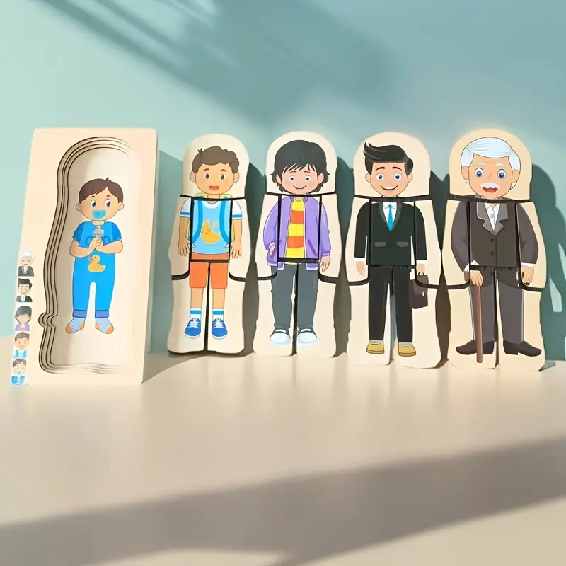 Interactive wooden puzzle about growth, shape recognition, and creative thinking.